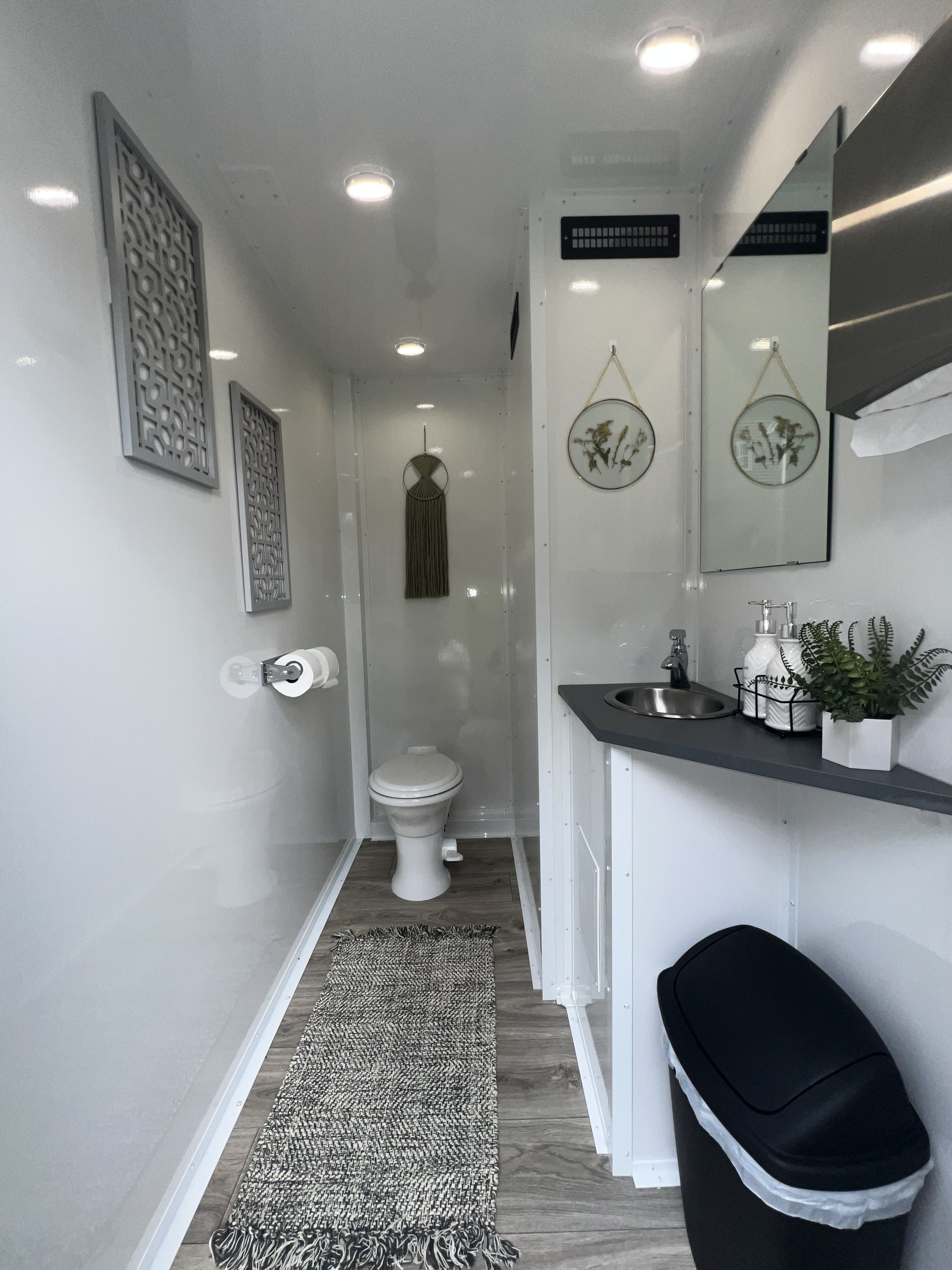 Each Evergreen Elite trailer is thoughtfully designed to deliver a premium experience that goes far beyond the standard portable restroom. With modern finishes, hotel-quality amenities, and dependable service, we bring comfort and class to any event or job site.